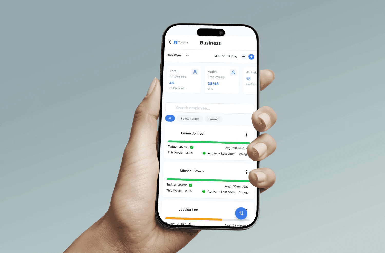 Boost confidence, track progress, and scale global communication with Tutoria Business.